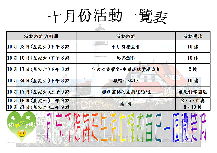 2015-10月份活動一覽表