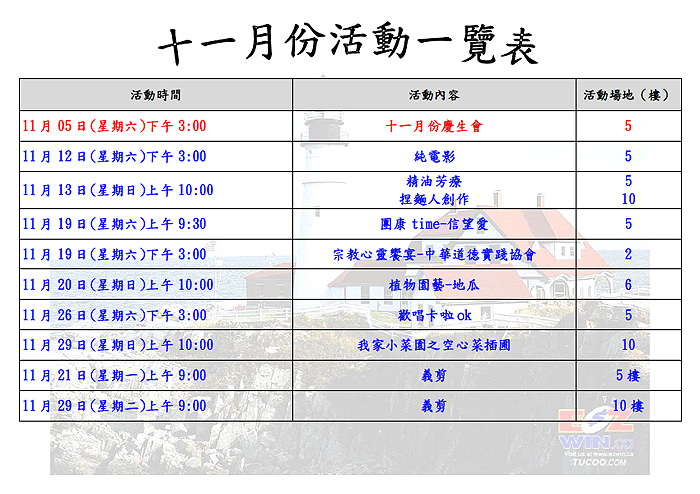 2016-11月份活動一覽表